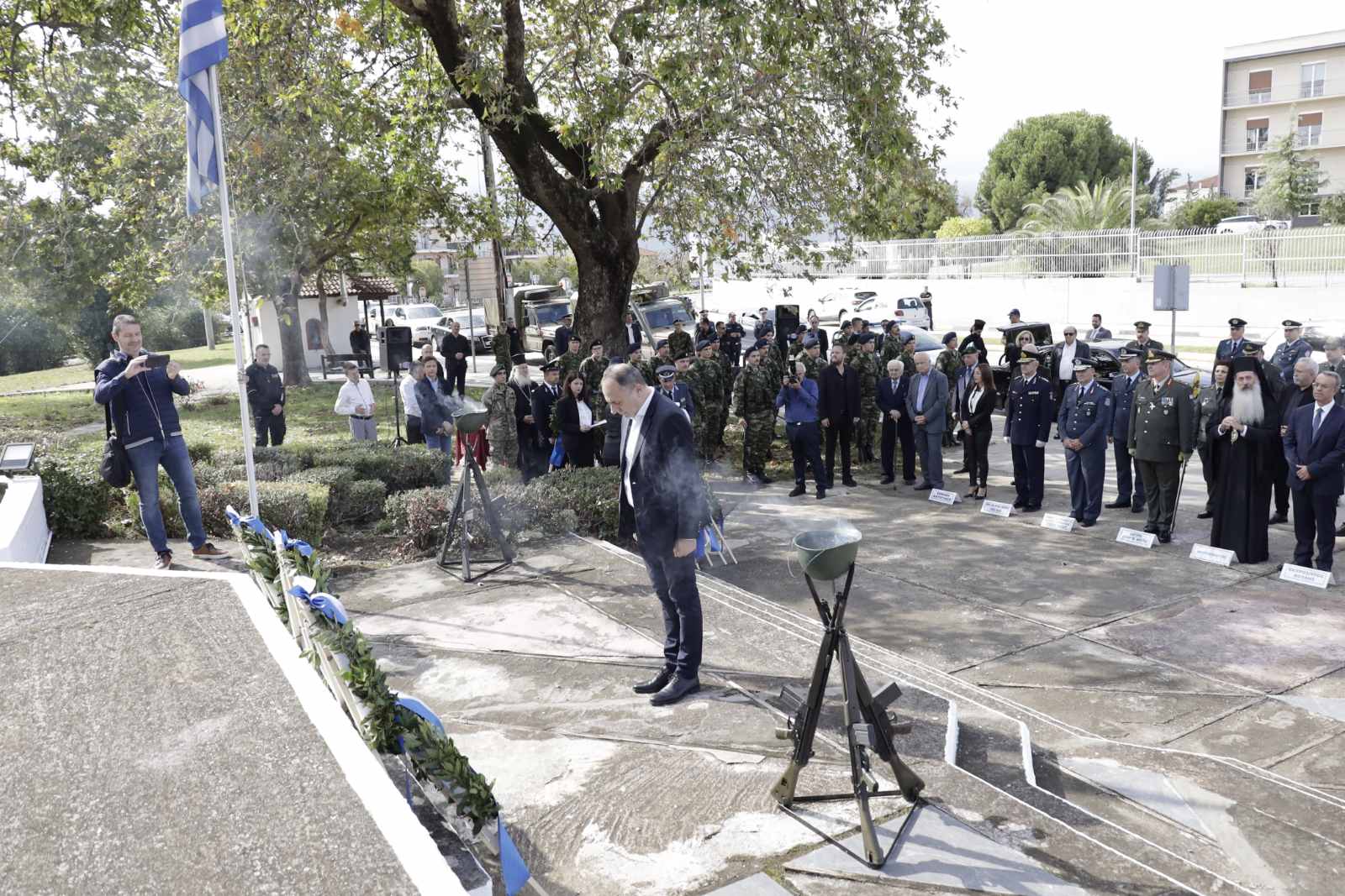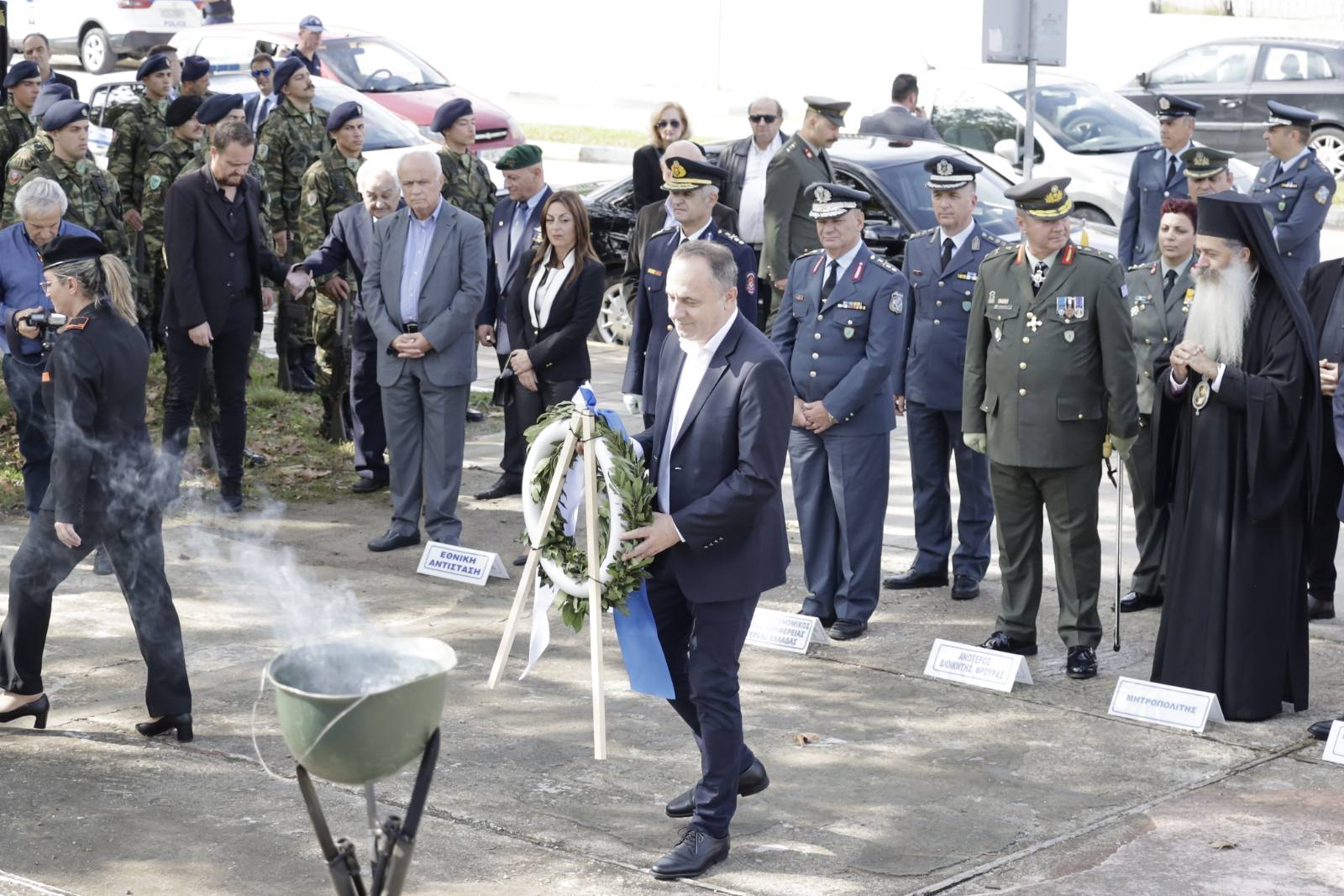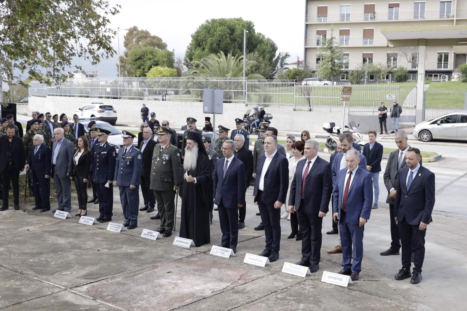Το παρών έδωσαν ο Εκπρόσωπος της Βουλής και Βουλευτής Φθιώτιδας Χρήστος Σταϊκούρας, οι Βουλευτές Φθιώτιδας, Γιάννης Οικονόμου, Γεώργιος Κοτρωνιάς και Γιάννης Σαρακιώτης, ο εκπρόσωπος του Περιφερειάρχη Στερεάς Ελλάδας Φάνη Σπανού, Αντιπεριφερειάρχης Π.Ε Φθιώτιδας Ηλίας Σανίδας, ο Δήμαρχος Λαμιέων Πανουργιάς Παπαϊωάννου, ο Πρόεδρος του Δημοτικού Συμβουλίου Μάκης Πρέντζας, οι αντιδήμαρχοι του Δήμου Λαμιέων, ο Επικεφαλής της Μείζονος Μειοψηφίας του Δημοτικού Συμβουλίου Θύμιος Καραΐσκος, Περιφερειακοί και Δημοτικοί Σύμβουλοι, εκπρόσωποι του Στρατού και των Σωμάτων Ασφαλείας, εκπρόσωποι φορέων και συλλόγων καθώς και πλήθος πολιτών.
