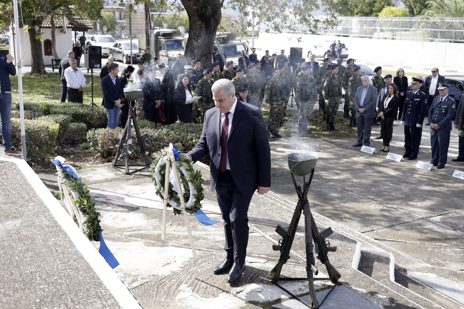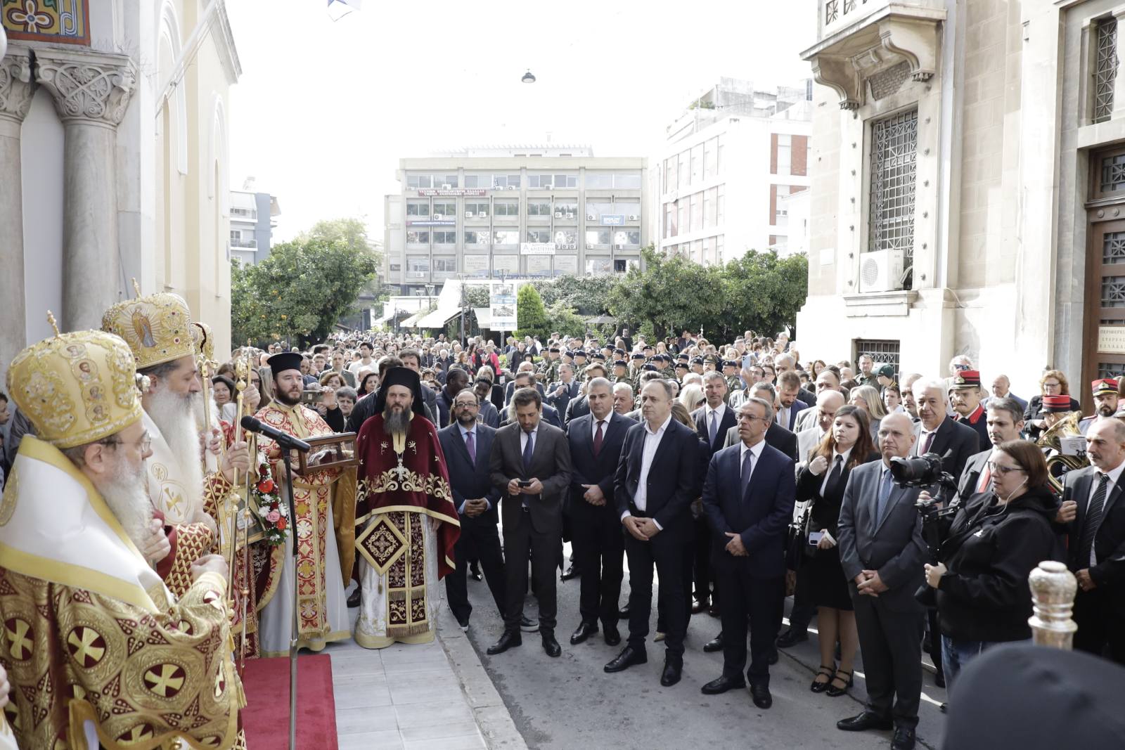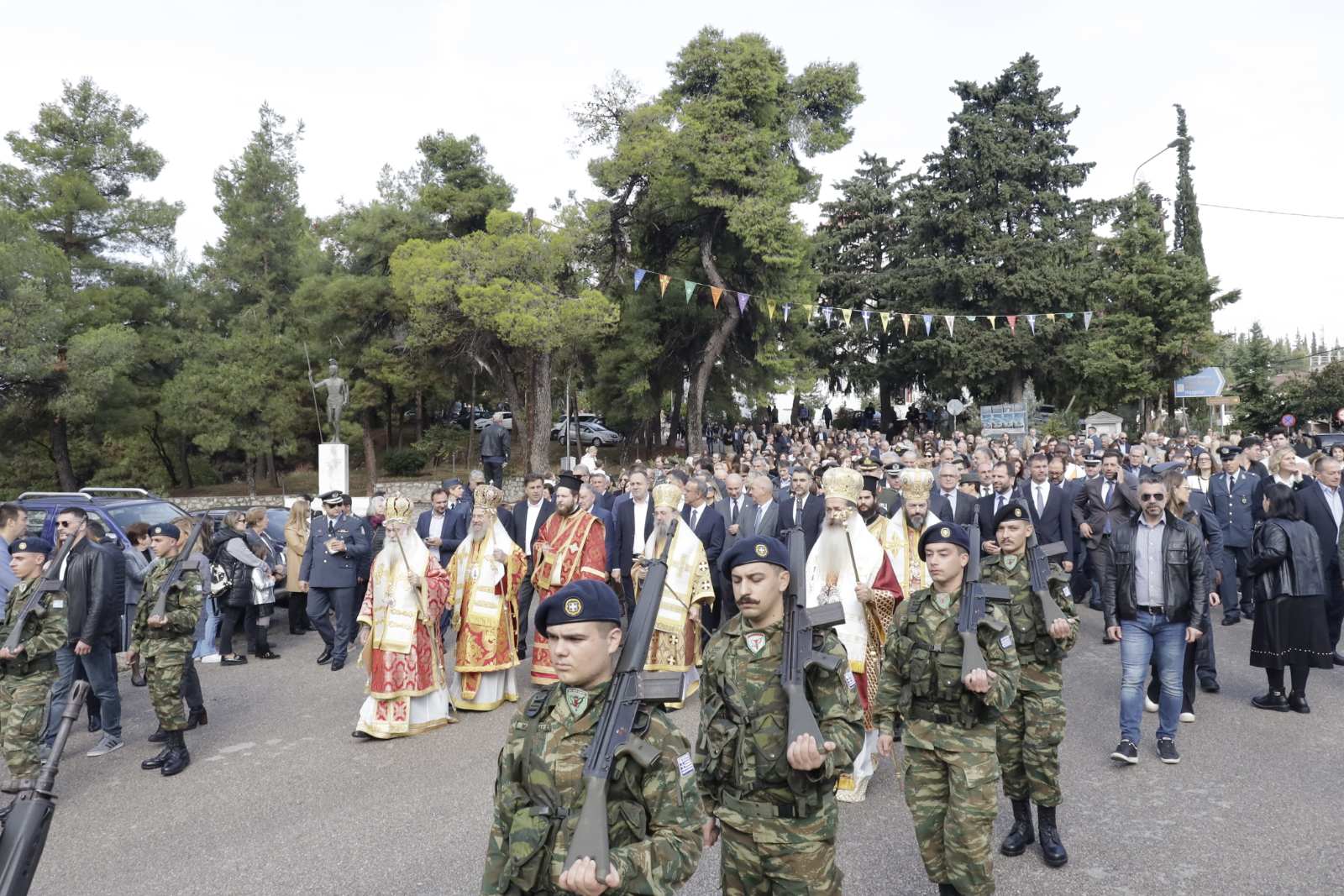 Το παρών έδωσαν ο Εκπρόσωπος της Βουλής και Βουλευτής Φθιώτιδας Χρήστος Σταϊκούρας, οι Βουλευτές Φθιώτιδας, Γιάννης Οικονόμου, Γεώργιος Κοτρωνιάς και Γιάννης Σαρακιώτης, ο εκπρόσωπος του Περιφερειάρχη Στερεάς Ελλάδας Φάνη Σπανού, Αντιπεριφερειάρχης Π.Ε Φθιώτιδας Ηλίας Σανίδας, ο Δήμαρχος Λαμιέων Πανουργιάς Παπαϊωάννου, ο Πρόεδρος του Δημοτικού Συμβουλίου Μάκης Πρέντζας, οι αντιδήμαρχοι του Δήμου Λαμιέων, ο Επικεφαλής της Μείζονος Μειοψηφίας του Δημοτικού Συμβουλίου Θύμιος Καραΐσκος, Περιφερειακοί και Δημοτικοί Σύμβουλοι, εκπρόσωποι του Στρατού και των Σωμάτων Ασφαλείας, εκπρόσωποι φορέων και συλλόγων καθώς και πλήθος πολιτών.