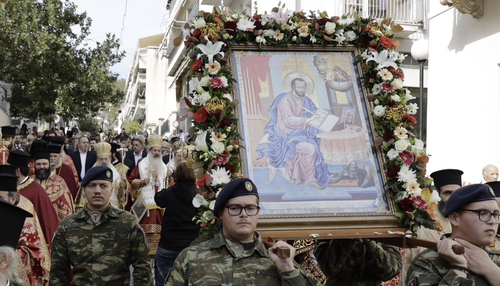 Το πρωί, στον Ιερό Ναό του Αγίου Αποστόλου και Ευαγγελιστή Λουκά, τελέστηκε Πανηγυρικός Όρθρος, χοροστατούντος του Σεβασμιωτάτου Μητροπολίτου Πατρών κ. Χρυσοστόμου και Πολυαρχιερατικό Συλλείτουργο προεξάρχοντος του Σεβασμιωτάτου Μητροπολίτου Πατρών κ. Χρυσοστόμου, ο οποίος και κήρυξε τον Θείο Λόγο, συνιερουργούντων των Σεβασμιωτάτων Μητροπολιτών Ιερισσού, Αγίου Όρους και Αρδαμερίου κ. Θεοκλήτου, Δρυϊνουπόλεως, Πωγωνιανής και Κονίτσης κ. Αλεξίου, Κορίνθου, Σικυώνος, Ζεμενού, Ταρσού και Πολυφέγγους κ. Παύλου και του Σεβασμιωτάτου Μητροπολίτου Φθιώτιδος κ. Συμεών.