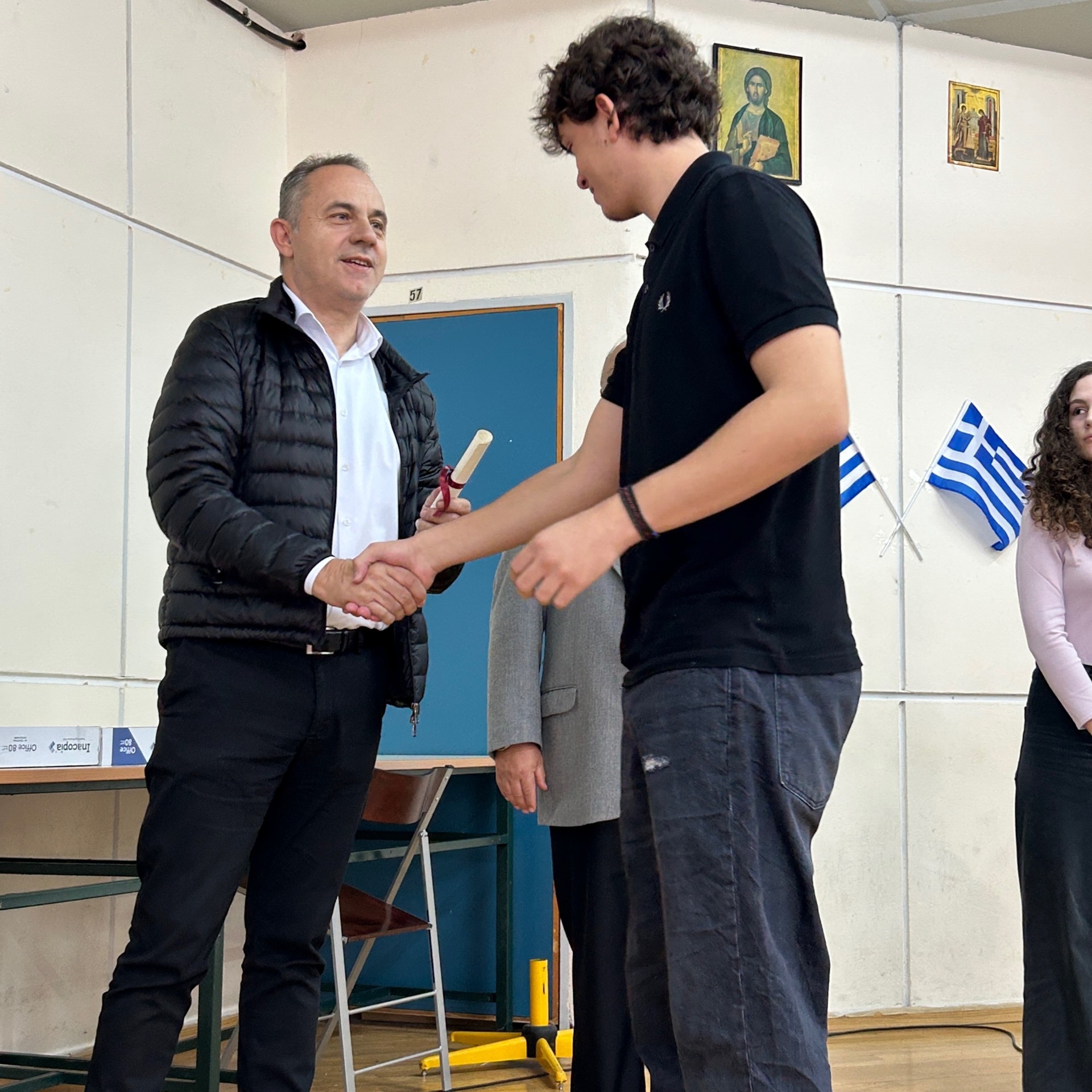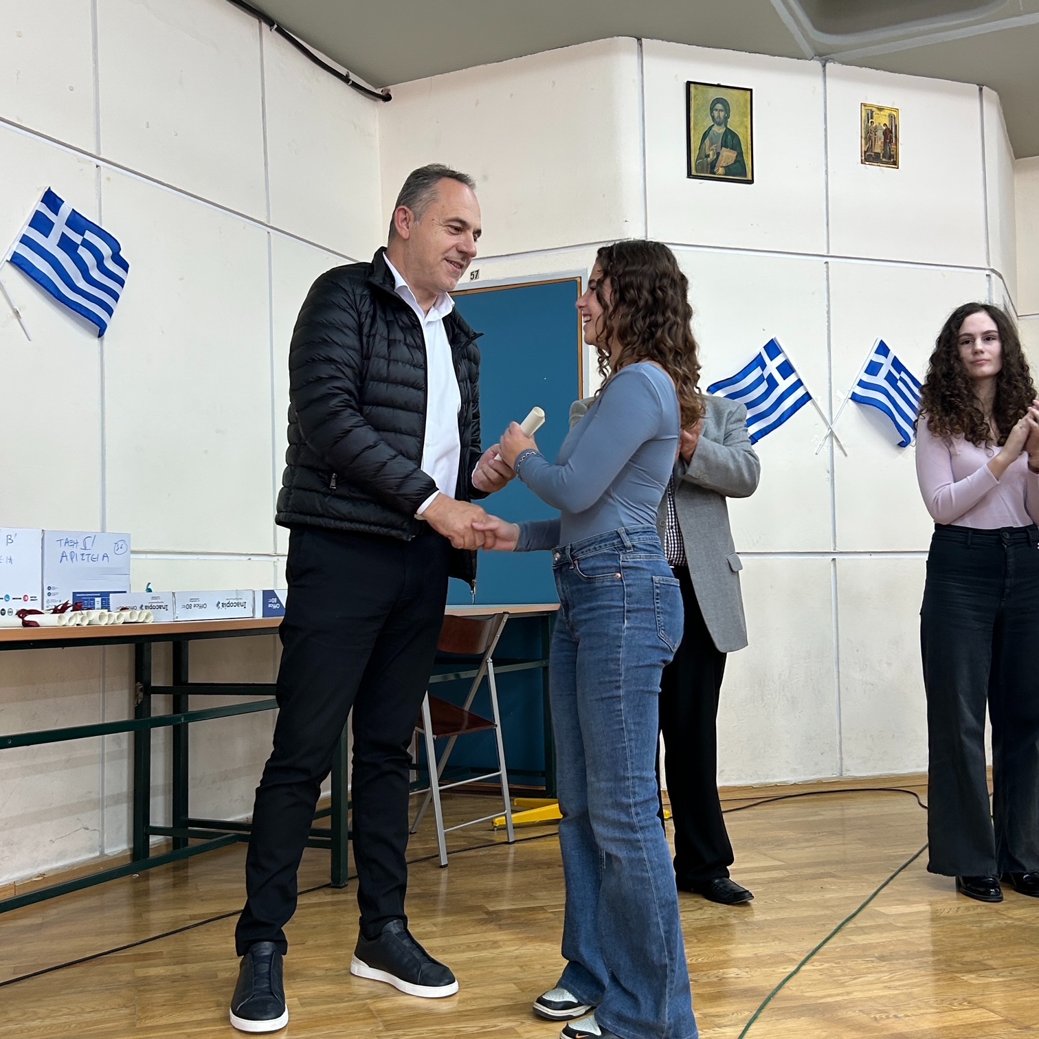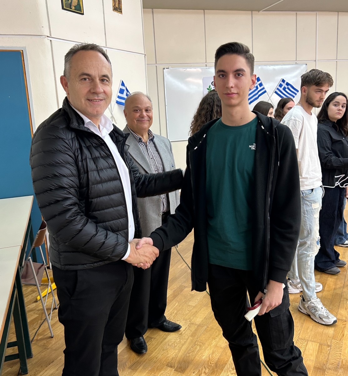 Ο Δήμαρχος Λαμιέων Πανουργιάς Παπαϊωάννου απένειμε τα βραβεία στους μαθητές, τιμώντας το ταλέντο, την συνεχή προσπάθεια και τη γνώση, στέλνοντας παράλληλα μήνυμα ελπίδας και αισιοδοξίας για τη νέα γενιά.