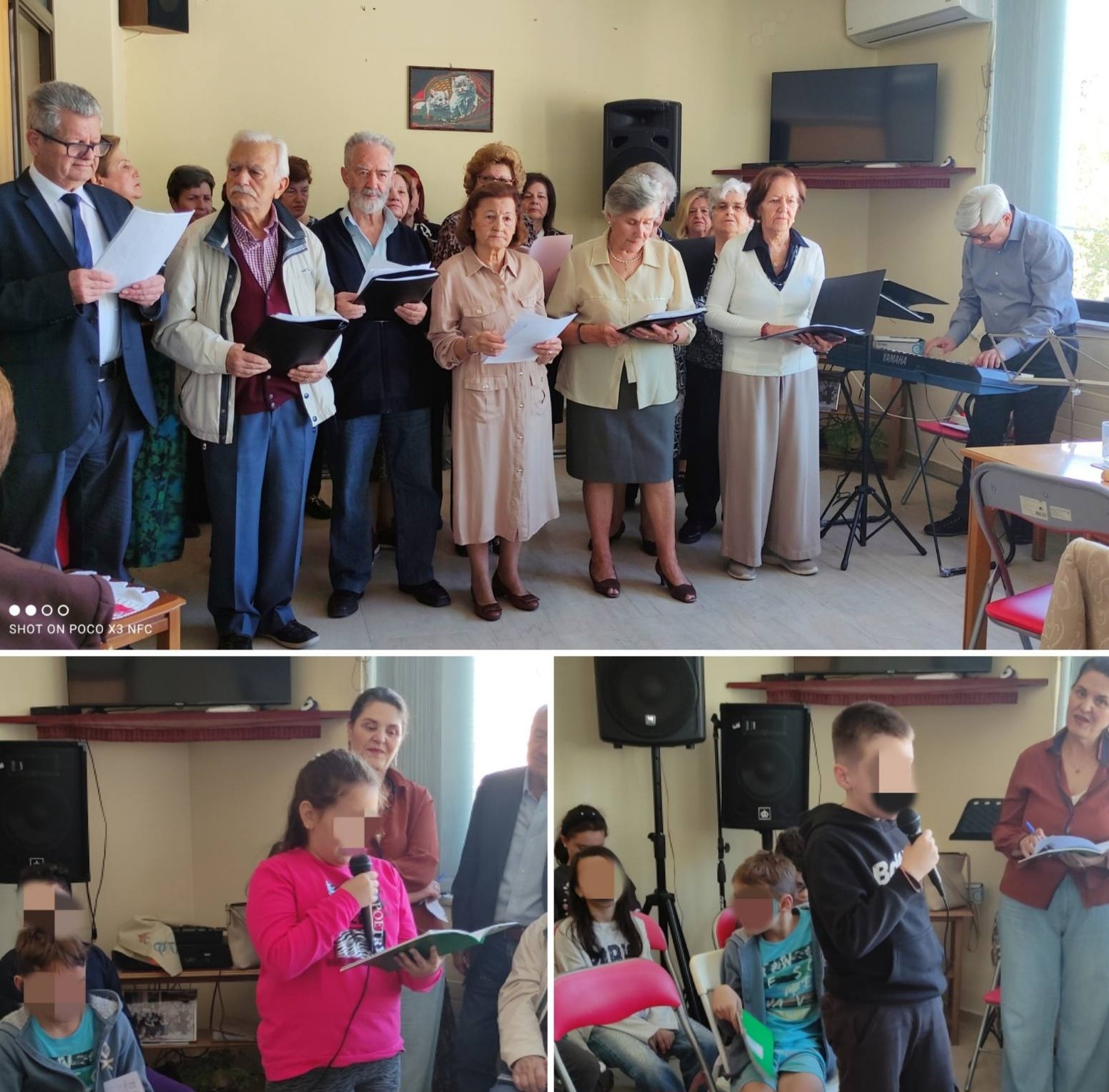 Ιδιαίτερα ξεχωριστή ήταν η γιορτή που πραγματοποιήθηκε στο Β΄ ΚΑΠΗ, η οποία πλαισιώθηκε με τη συμμετοχή μαθητριών και μαθητών της Δ΄ τάξης του 2ου Δημοτικού Σχολείου Λαμίας με τη συνοδεία της δασκάλας τους, Βασιλικής Υφαντή. Τα παιδιά, με τον αυθορμητισμό και τη ζωντάνια τους, αφηγήθηκαν ιστορίες και όμορφες αναμνήσεις που μοιράζονται με τις γιαγιάδες και τους παππούδες τους, δημιουργώντας ένα συγκινητικό κλίμα επικοινωνίας ανάμεσα στις δύο γενιές. Η εκδήλωση συνεχίστηκε με τραγούδια από τη χορωδία του Β΄ ΚΑΠΗ, υπό τη μουσική καθοδήγηση του μαέστρου Δημήτρη Γκαραβέλη. Τέλος, τα μέλη του ΚΑΠΗ, θέλοντας να ευχαριστήσουν τα παιδιά, τους προσέφεραν γλυκίσματα, ως ελάχιστη ένδειξη φιλοξενίας και αγάπης.