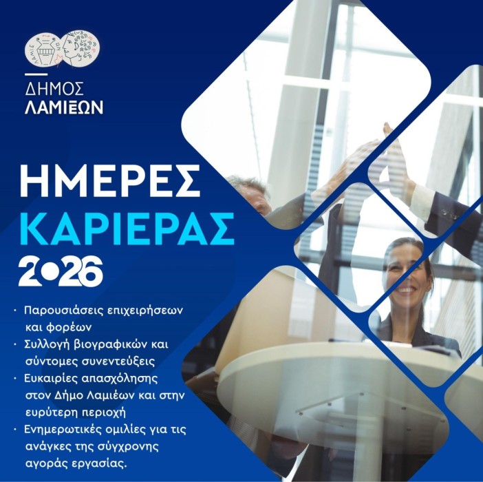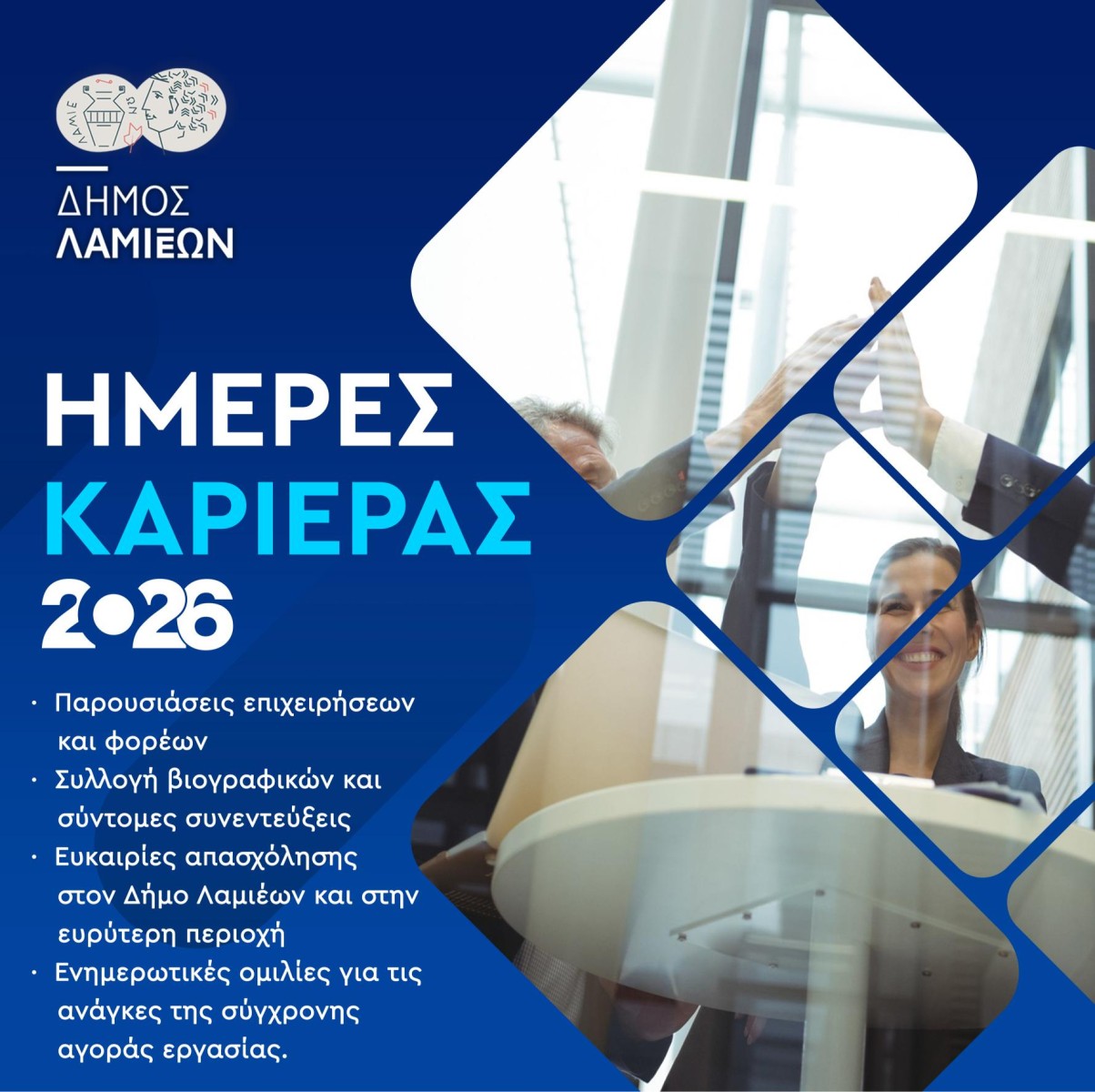 Ο Δήμος Λαμιέων προγραμματίζει τη διοργάνωση εκδηλώσεων με θέμα «Ημέρες Καριέρας», μια πρωτοβουλία ενημέρωσης για τις ανάγκες της Αγοράς Εργασίας και τις Ευκαιρίες Απασχόλησης που υπάρχουν στον Δήμο μας και στην ευρύτερη περιοχή.