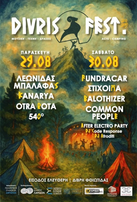 Ο Δήμος Λαμιέων, για ακόμη μία χρονιά, στηρίζει το φεστιβάλ Divris Fest  που διοργανώνεται από τον Πολιτιστικό & Εξωραϊστικό Σύλλογο Διβριωτών και τη Νεολαία Δίβρης και σας περιμένει κάτω από τα πλατάνια με μουσική, γεύσεις και χαμόγελα.